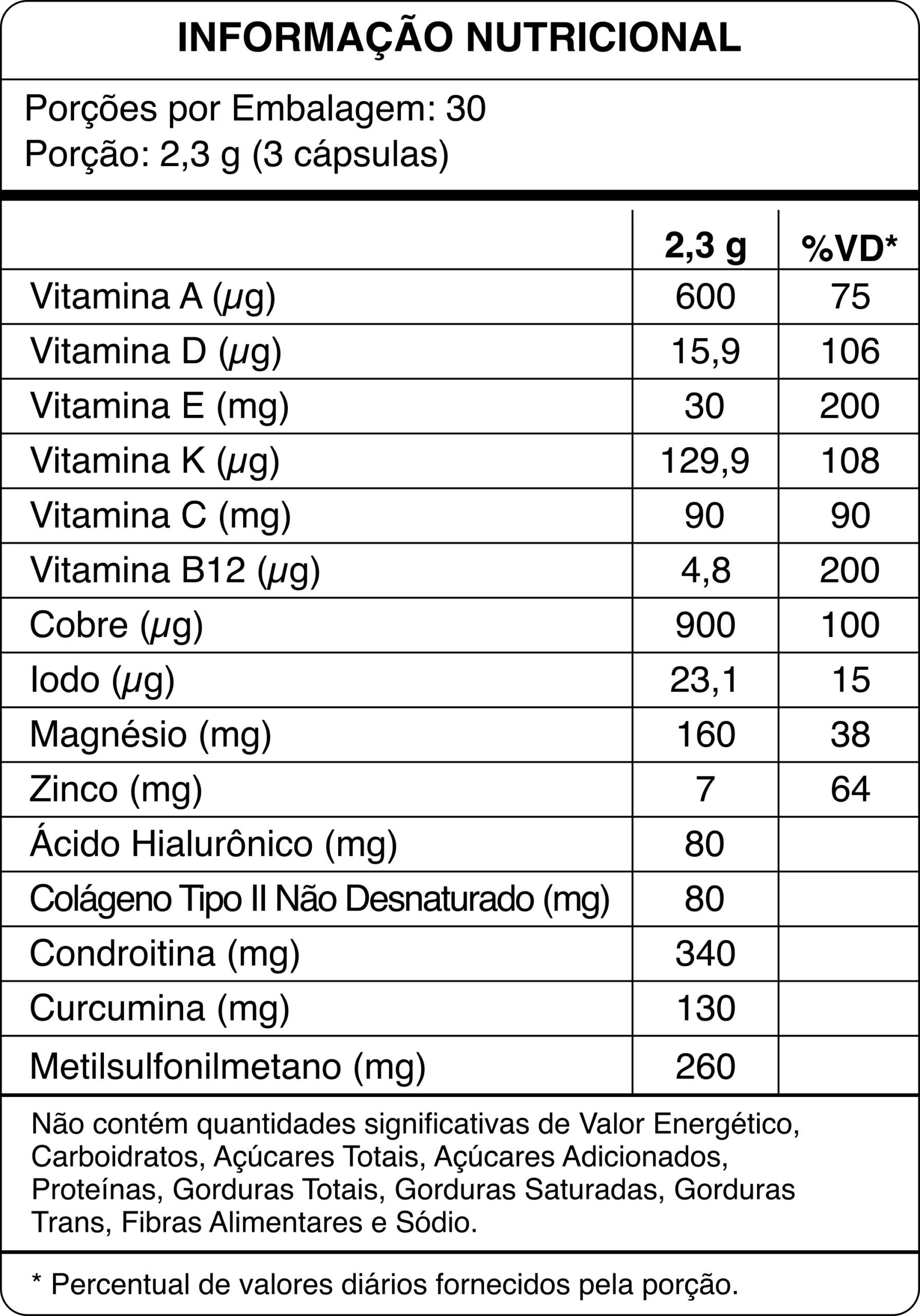 - Vitamina E (30mg): Antioxidante que protege as articulações